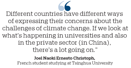 Joel Naoki Ernesto Christoph, a French student who has been studying at Tsinghua University for four months, said Chinese society is now speaking out more on climate change.