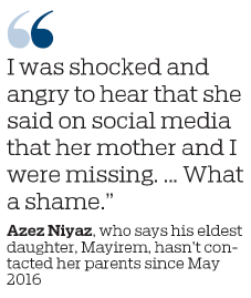 Azez Niyaz, 63, said Mayirem Azez, his eldest daughter, is the one who has been missing.