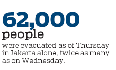 As of Thursday, more than 62,000 people were evacuated in Jakarta alone, disaster mitigation agency spokesman Agus Wibowo said, twice as many as a day earlier.