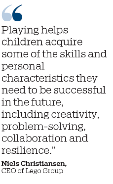 "Playing helps children acquire some of the skills and personal characteristics they need to be successful in the future, including creativity, problem-solving, collaboration and resilience," said Lego CEO Niels Christiansen.