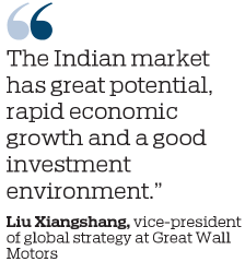 "The Indian market has great potential, rapid economic growth and a good investment environment," said Liu Xiangshang, vice-president of global strategy at the Chinese automaker.