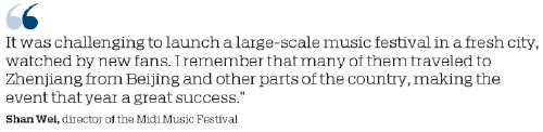 "It was challenging to launch a large-scale music festival in a fresh city, watched by new fans. I remember that many of them traveled to Zhenjiang from Beijing and other parts of the country, making the event that year a great success," Shan said.