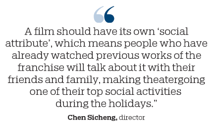"Besides, a film should have its own 'social attribute', which means people who have already watched previous works of the franchise will talk about it with their friends and family, making theatergoing one of their top social activities during the holidays," says Chen.