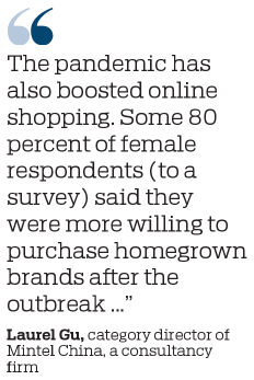 "The pandemic has also boosted online shopping. Some 80 percent of female respondents said they were more willing to purchase homegrown brands after the outbreak, a shift in consumption attitudes that might have an impact on their buying choices at online and offline channels for a long period of time," Gu said.