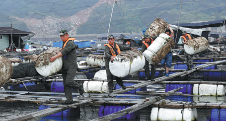 Chinese people eat nearly 65 million tons of seafood every year, accounting for 45 percent of global consumption, with more than 50 million coming from floating farms.