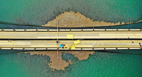 At 6 am every day, 57-year-old You Weide steers a boat to a floating house on the sea and scatters fish feed across the surface of the water that is divided by lines of plastic planks. A shoal of fish rises and takes elegant bites.