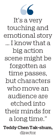 "It's a very touching and emotional story. I have worked in the film industry for many years. I know that a big action scene might be forgotten as time passes, but characters who move an audience are etched into their minds for a long time," says Chen.