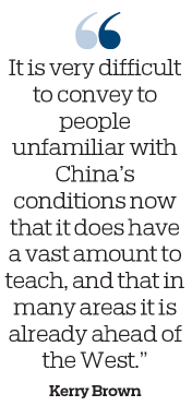"It is very difficult to convey to people unfamiliar with China's conditions now that it does have a vast amount to teach, and that in many areas it is already ahead of the West. The patronizing idea that it just needs to sit and take instruction from others needs to disappear. The best position for all of us is to learn together-and China being a teacher in many areas is important."