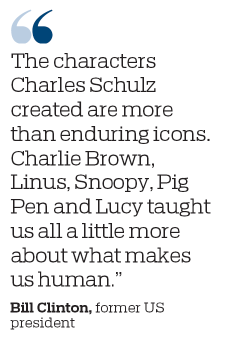 Upon the cartoonist's retirement in 1999, former US president Bill Clinton wrote: "The characters Charles Schulz created are more than enduring icons. Charlie Brown, Linus, Snoopy, Pig Pen and Lucy taught us all a little more about what makes us human. Virtually every day for a half century, Charles Schulz has shown us that a comic strip can transcend its small space on the page. It can uplift; it can challenge; it can educate its readers even as it entertains us."