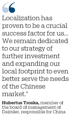 "Since then, localization has proven to be a crucial success factor for us," said Hubertus Troska, member of the board of management of Daimler, responsible for China.