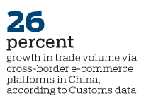 In the first half of the year, China's trade volume via cross-border e-commerce platforms overseen by Customs authorities increased 26 percent year-on-year, with exports up by nearly 29 percent, data from the General Administration of Customs showed.