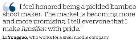 "But now I feel honored being a pickled bamboo shoot maker. The market is becoming more and more promising. I tell everyone that I make luosifen with pride."