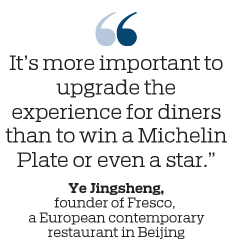 Zhu Haifeng, chef at Shanghai Cuisine in Beijing, which has two Michelin stars, said that after the restaurant gained its rating last year, clients quickly flocked to the business.