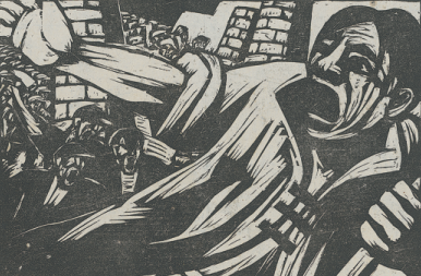 Hu and his schoolmates often traveled to Shanghai to see new art and cultural trends. It was there where they were introduced to the art of woodcut printing by Lu Xun, the noted writer and print collector. He initiated an art movement among young people, encouraging them to make woodcut prints, which didn't cost much money, were easy to make and quick to spread-and therefore convenient to carry revolutionary ideas to the common people.
