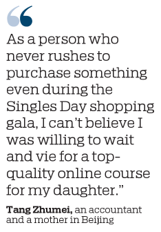 "As a person who never rushes to purchase something even during the Singles Day shopping gala, I can't believe I was willing to wait and vie for a top-quality online course for my daughter," Tang said.