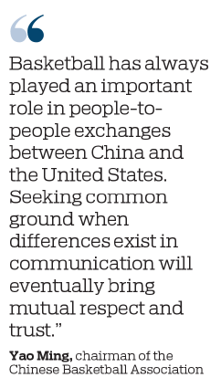 "Basketball has always played an important role in people-to-people exchanges between China and the United States," said Yao, who is now chairman of the Chinese Basketball Association, earlier this month.