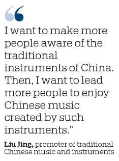 "I want to make more people aware of the traditional instruments of China. Then, I want to lead more people to enjoy Chinese music created by such instruments," says Liu.