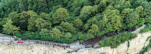 As well as online indoor concerts, the Xi'an Symphony Orchestra also put on outdoor performances at iconic sites in the province. For example, a concert, titled XSO Meets Huashan Mountain Summit Clouds Rhapsody, took place in July 2020, which saw more than 200 musicians from the orchestra, under the baton of conductor Tang Muhai, perform on Huashan Mountain in Shaanxi province, one of China's five most famous mountains, known for its picturesque, steep and perilous peaks.