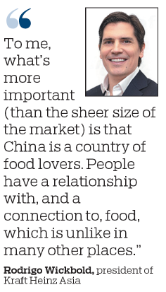 For Kraft Heinz-global net sales: about $26 billion in 2020-China is offering great opportunities to grow its food business exponentially, said Wickbold, who relocated to China from Singapore last year to set up the company's Asia headquarters.