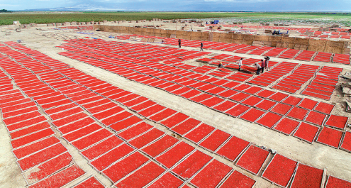 Goji berries are considered a specialty of Jinghe county, as the dry weather, plentiful sunshine and a large temperature difference between day and night are conducive to growing the small, red fruit.