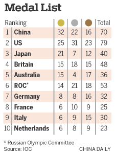 China won a gold medal in the women's quadruple sculls with a world-record time in Tokyo, its second-ever Olympic gold in the rowing competition after the 2008 Beijing Games.