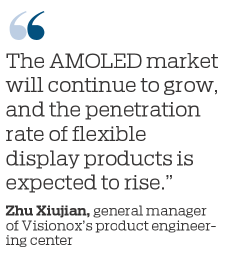 "The AMOLED market will continue to grow, and the penetration rate of flexible display products is expected to rise," said Zhu Xiujian, general manager of Visionox's product engineering center, adding that the flexible and foldable screens will play a vital role in bolstering the growth of small and medium-sized smartphones.