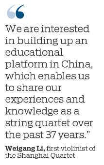 "We are interested in building up an educational platform in China, which enables us to share our experiences and knowledge as a string quartet over the past 37 years. It's a great opportunity to fulfill this idea, so we decided to return to China," says Weigang Li, who teaches both the pre-college and graduate programs.