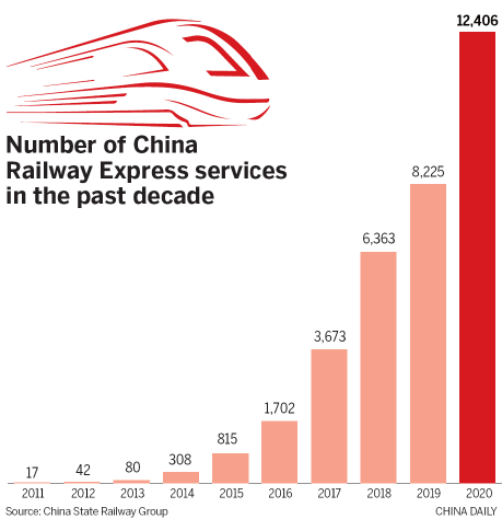 According to the China State Railway Group, 12,605 CRE train services plied the route in the first 10 months of this year, carrying 1.22 million TEUs (20-foot equivalent units), a rise of 26 percent and 33 percent, respectively, over the same period of last year and both exceeding the yearly numbers of 2020.