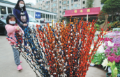 Its auspicious name and the buds on its branches make the silver willow a popular plant to have for Lunar New Year. Florists often cut the branches before their fluffy, silver buds sprout and paint them in different colors, often red for Spring Festival. They then bundle them together in bottles for sale.