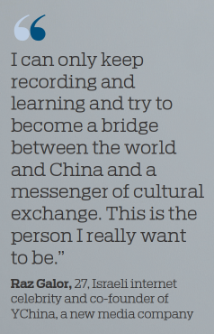 As the country attracts increasing numbers of expats to study or work, local people are interacting more with them. Consequently, there is a unique group of foreigners living in China who are trying to show the world their understanding of the country in an innovative way. Raz Galor, 27, an Israeli internet celebrity, is one of them. Galor co-founded a new media company called YChina with three Chinese partners in 2017, to highlight expat life.