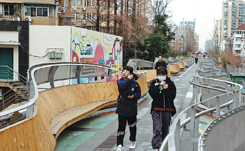 Similar projects have already reaped commercial gains. For example, in one project on Yuyuan Road, a store of 9 square meters that was turned into a "public-story wall" has attracted some 2,000 people to share their stories in just two months and significantly increased footfall in the area. Another example is the 900-meter-long section between Jiangsu Road and Dingxi Road, which has been turned into a leisure space, featuring lawns and flower beds over 130 square meters that families in the area enjoy.