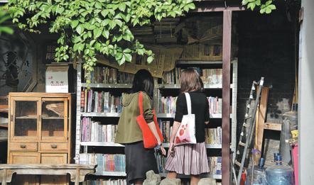 About a 20-minute drive away, Zhengyang Bookstore sits under a striking ancient pagoda of the Yuan Dynasty (1271-1368) at the bustling Xisi intersection of Xicheng district. The octagonal Pagoda of Monk Wansong has nine stories and is the only remaining brick pagoda in the inner city of Beijing. Immersed in this ancient setting, Zhengyang Bookstore keeps thousands of volumes on the history and culture of Beijing. It boasts valuable materials that cannot be found in other libraries or archives. One can be exposed to a quadrangle courtyard filled with historical items, including gate piers, door planks, tables and chairs. For many people in Beijing, it is not only a bookstore, but a place for nostalgia.