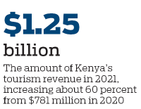Kenya's tourism revenue amounted to $1.25 billion last year, an indication that the sector is gradually recovering, Ongalo said. Total tourism revenue in 2020 was $781 million, which was a huge drop from $1.4 billion in 2019, she added.