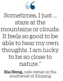 Lack of conventional means of recreation implies that residents of the county have to endure long-term solitude. Xia finds the laid-back lifestyle peaceful. "Sometimes, I just sit outside the cafe and stare at the mountains or clouds. It feels so good to be able to hear my own thoughts. I am lucky to be so close to nature," she says.