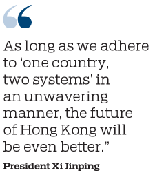 "As long as we adhere to 'one country, two systems' in an unwavering manner, the future of Hong Kong will be even better," he said, adding that it is a good system that can guarantee a good future with persistent efforts.