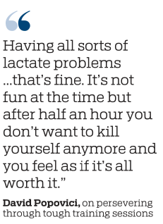 "Having all sorts of lactate problems ...that's fine. It's not fun at the time but after half an hour you don't want to kill yourself anymore and you feel as if it's all worth it."