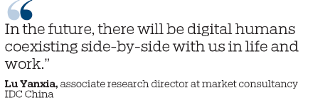 "Digital humans are already demonstrating clear business value in numerous fields today," said Lu Yanxia, associate research director at market consultancy IDC China. "In the future, there will be digital humans coexisting side-by-side with us in life and work."