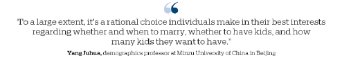 "To a large extent, it's a rational choice individuals make in their best interests regarding whether and when to marry, whether to have kids, and how many kids they want to have," the professor said.