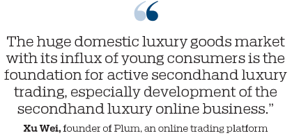 Xu said, "The huge domestic luxury goods market with its influx of young consumers is the foundation for active secondhand luxury trading, especially development of the secondhand luxury online business."