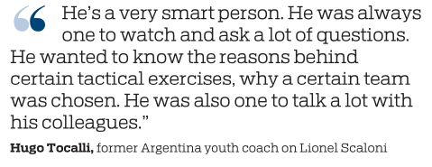 "He's a very smart person. He was always one to watch and ask a lot of questions," Hugo Tocalli, the coach of Argentina's youth squads from 1994-2007 and field assistant to Jose Pekerman at the 2006 World Cup, told Associated Press.