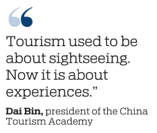 "Tourism used to be about sightseeing. Now it is about experiences," Dai Bin, president of the China Tourism Academy, told Beijing Daily.