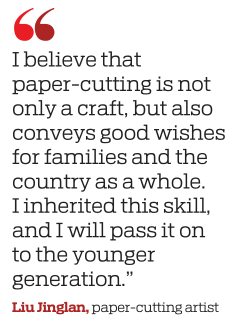 "I believe that paper-cutting is not only a craft, but also conveys good wishes for families and the country as a whole. I inherited this skill, and I will pass it on to the younger generation," Liu says.