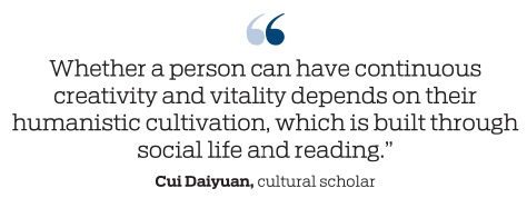 "Whether a person can have continuous creativity and vitality depends on their humanistic cultivation, which is built through social life and reading," Cui Daiyuan, a cultural scholar, said at the event.