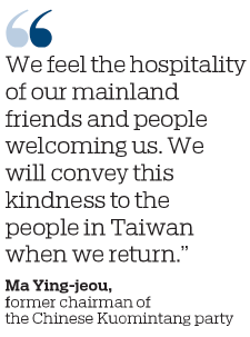 "During our trip, we feel the hospitality of our mainland friends and people welcoming us. We will convey this kindness to the people in Taiwan when we return," he said.