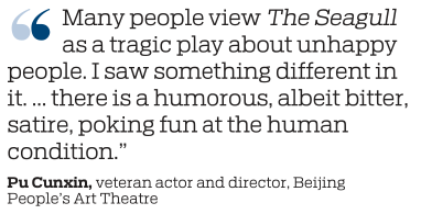For Chinese audiences, The Seagull is arguably the best known of Russian writer Anton Chekhov's works. It was adapted by the Beijing People's Art Theatre in 1991 with a translation by Chinese scholar Tong Daoming. Gathering a venerable cast of veteran Chinese actors, including Pu Cunxin, Xu Fan and Yang Lixin, the play was directed by Oleg Efremov, the chief director of Moscow Art Theatre. It was so well received that it still inspires Pu.