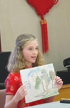 Sage Houdek, a fifth grader from the Yinghua Academy in Minneapolis, has the Chinese name of Yan Lirui, which literally means "agile and wise". The 10-year-old, in red traditional Chinese costume, said she was "very lucky" to be able to attend a Chinese immersion program from an early age.
