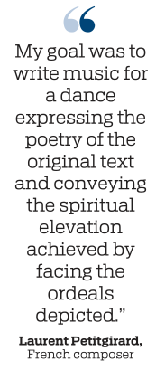 "My goal was to write music for a dance expressing the poetry of the original text and conveying the spiritual elevation achieved by facing the ordeals depicted," says Petitgirard. "The French composer begs indulgence for being so bold as to take on such a monument of Chinese literature."