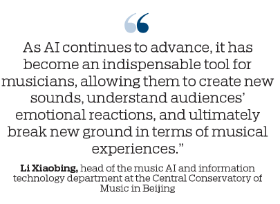 Li Xiaobing, executive director of the concert and head of the music AI and information technology department at the Conservatory, said: "AI is everywhere and is radically changing our daily lives, for example, in shopping, commuting and banking. In music, AI is fundamentally changing not just how we listen to it, but how music is created and even how the music industry operates.