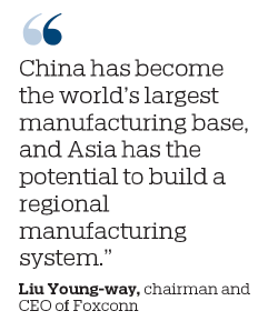 Manufacturing helps safeguard social stability and improves people's well-being, Liu said, adding that "China has become the world's largest manufacturing base, and Asia has the potential to build a regional manufacturing system".