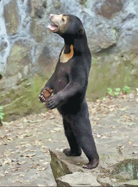 As for Angela's humanlike posture, Jiang said that all bears can stand on their hind legs to view distant objects, or when they sense a potential enemy. Sun bears are excellent tree climbers and inquisitive by nature, and have a greater tendency to stand on their hind legs, he added.